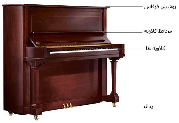 نام امروزهی پیانو خلاصه شده “پیانو فورته” است، نامی که در اوایل قرن هجدهم به دلیل توانایی در نواختن نتها از پیانیسیمو تا فورتیسیمو به آن داده بودند. امروزه پیانو به دو شکل مختلف ساخته میشود. “پیانوی بزرگ” متشکل از سه پایه و بر روی آن جعبهی طنینی ساز که تقریبا سه گوش است و یک ضلع آن به ردیف شستیها اختصاص یافته و دو ضلع دیگر، منحنی دار از دو جانب ادامه یافته و به یکدیگر متصل میشوند. در این پیانوها، چکشها از زیر سیمها به آنها کوبیده میشوند. نوع دوم نام آن “پیانینو” یا پیانوی کوچک است و به پیانوی دیواری نیز موسوم است. در این نوع پیانو سیمها عمودی قرار دارند و چکشها از جلو به سیمها برخورد میکند. پیانو پس از ارگ بادی، بیشترین وسعت صدا و تنوع تمبر صوتی را داراست. وسعت صدای پیانو کمی بیش از هفت اکتاو است. ویژگیهای پیانو باعث شده که بعنوان ساز سلو، ساز آکومپانیمان و ساز شرکت کننده در ارکسترهای مجلسی بتواند نقش ایفا کند.