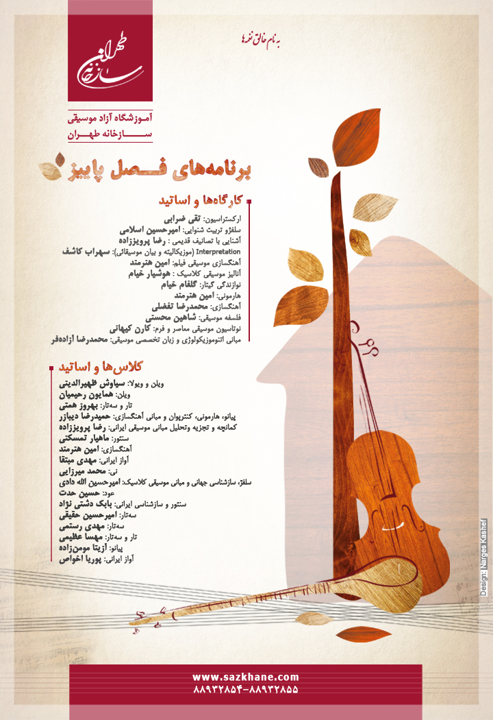 سازخانه طهران دوره های عالی آموزشی موسیقی را در دو بخش دوره های کارگاهی (گروهی) و کلاس های ساز و تئوری (کلاس عملی- انفرادی) برای فصل پاییز برگزار می کند.